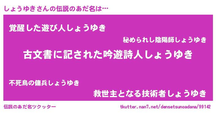 | 意味不明あだ名 | 『永久保存しょうゆき』『自称しょうゆき』 |