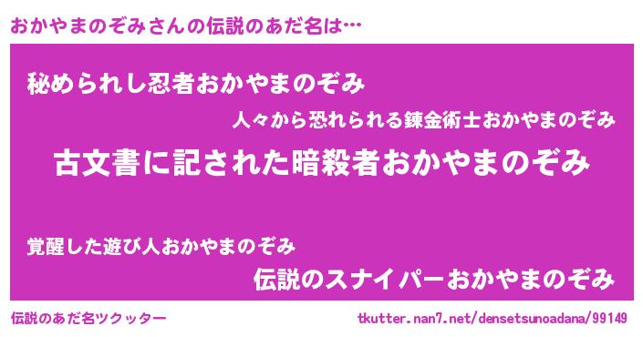 | 意味不明あだ名 | 『住所不定無職おかやまのぞみ(53歳)』 |