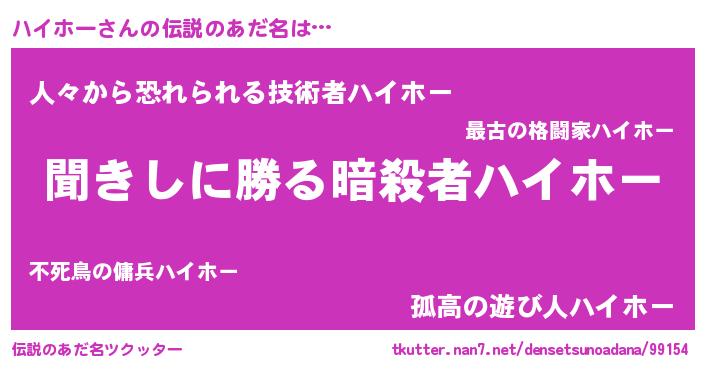 | ヒーロー風カッコイイあだ名 | 『ネオハイホー』『正義の使者ハイホー』 |