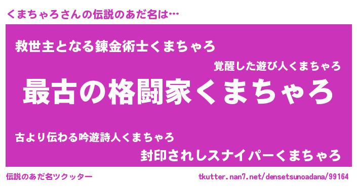 | ファンタジー風あだ名 | 『エターナルクマチャロー』『クマフェル』 |