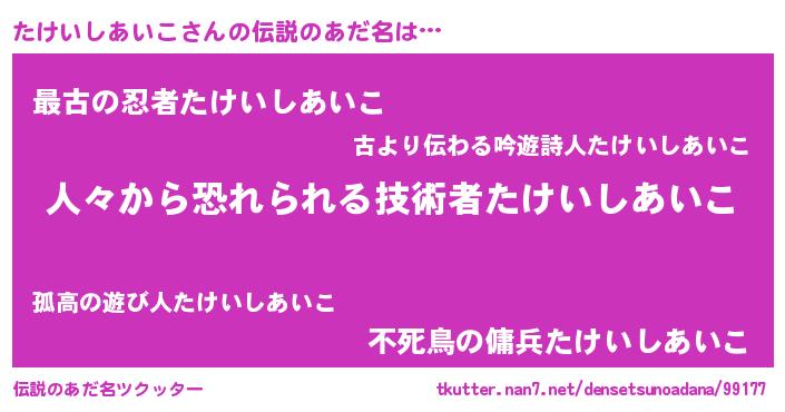 | 意味不明あだ名 | 『住所不定無職たけいしあいこ(4歳)』 |