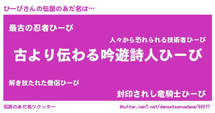 | 胡散臭い通販商品みたいなあだ名 | 『テレビで話題の高麗人参…その名も「ひーび」』 |
