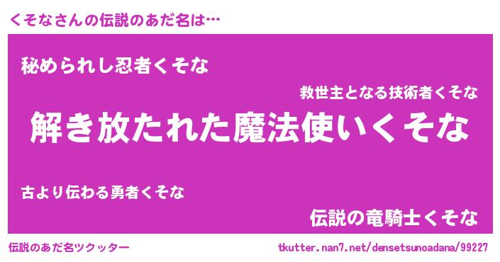 | 意味不明あだ名 | 『とにかく怪しいくそな』『自称くそな』 |