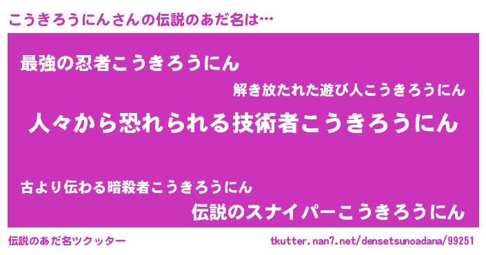 | ヒーロー風カッコイイあだ名 | 『正義の使者こうきろうにん』 |