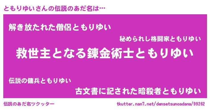 | 意味不明あだ名 | 『自称ともりゆい』『永久保存ともりゆい』 |