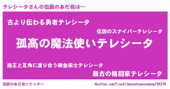 | 意味不明あだ名 | 『自称テレシータ』『永久保存テレシータ』 |