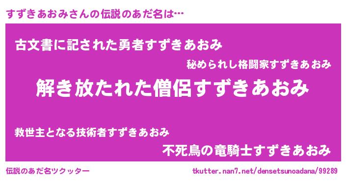 | 意味不明あだ名 | 『とにかく怪しいすずきあおみ』 |