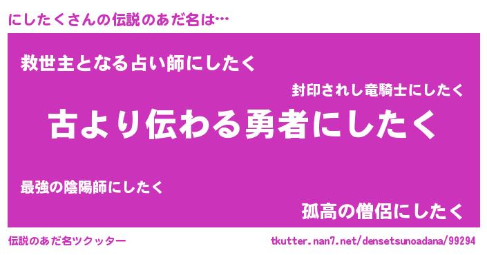 | 男性向けラノベタイトル風あだ名 | 『にしたくという概念が存在しない退屈な世界 』 |