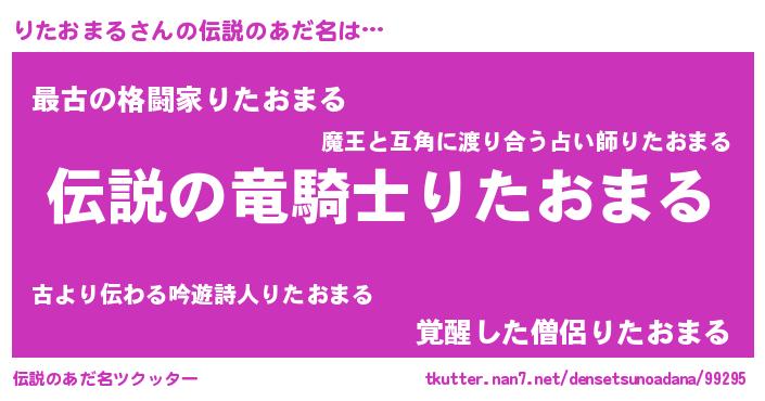 | 男性向けラノベタイトル風あだ名 | 『りたおまるの憂鬱』 |