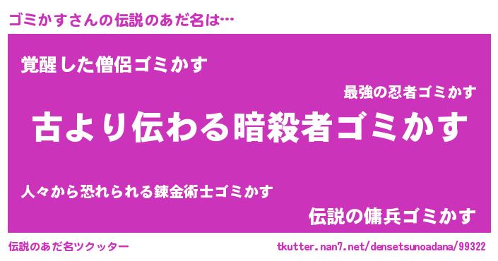 | ヒーロー風カッコイイあだ名 | 『サイバー戦士ゴミカス』『ネオゴミカス』 |