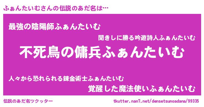 | ヒーロー風カッコイイあだ名 | 『スーパーファンタイム』『炎刃騎士ファ』 |