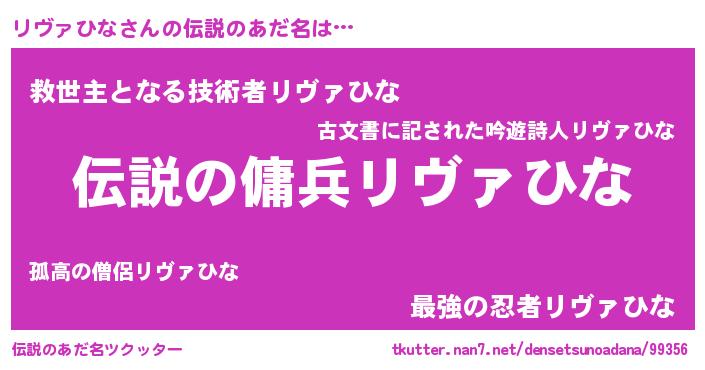 | 男性向けラノベタイトル風あだ名 | 『リヴァヒナスレイヤー』 |