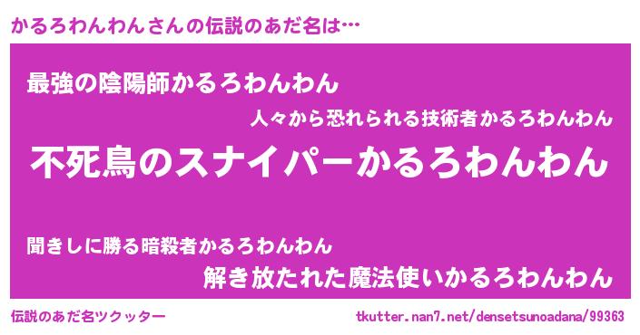 | 胡散臭い通販商品みたいなあだ名 | 『モテモテ間違いなし霊験あらたかなお札…その名も「かるろわんわん」』 |