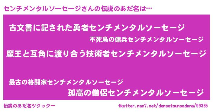| ヒーロー風カッコイイあだ名 | 『友情の使者センチメンタルソーセージ』 |