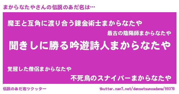 | ヘコむあだ名 | 『まからなたや(笑)』『まかにゅー』 |