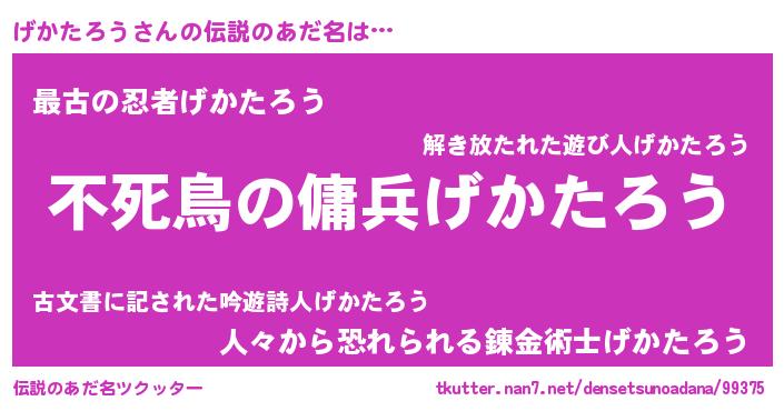 | ヒーロー風カッコイイあだ名 | 『スーパーゲカタロウ』『仮面ゲカダー』 |