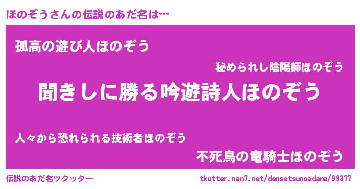 | ヒーロー風カッコイイあだ名 | 『ネオホノゾウ』『黄金騎士ホノ』 |