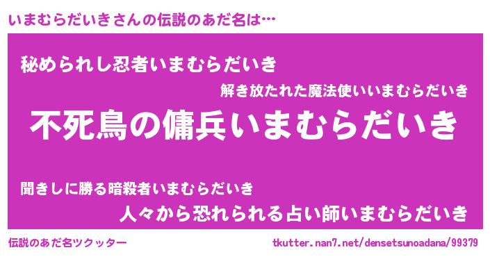 | 胡散臭い通販商品みたいなあだ名 | 『モテモテ間違いなし水晶球…その名も「いまむらだいき」』 |