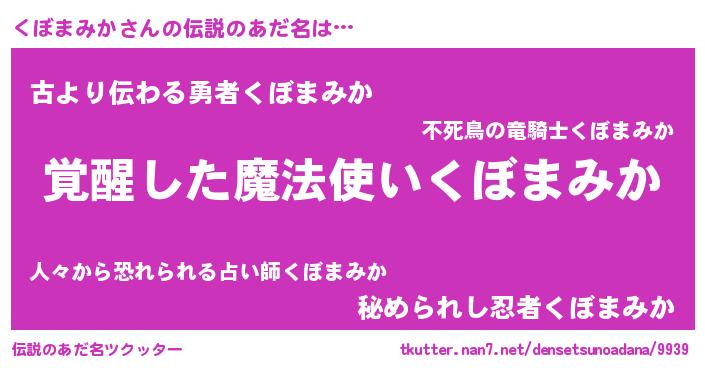 | 男性向けラノベタイトル風あだ名 | 『くぼまみかの嫁は女の子じゃないと思った?』 |