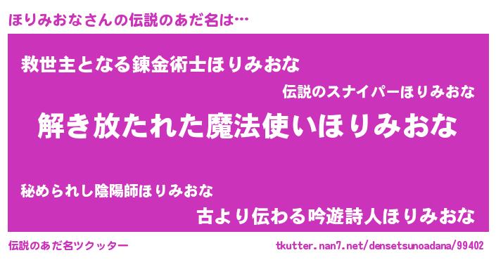 | ヘコむあだ名 | 『ほりお』『ほりみおな(震え声)』 |