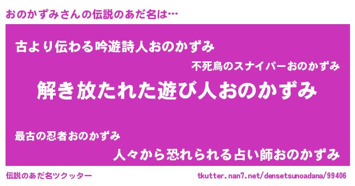 | 意味不明あだ名 | 『住所不定無職おのかずみ(71歳)』 |