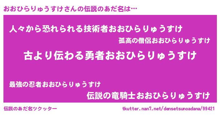 | 意味不明あだ名 | 『永久保存おおひらりゅうすけ』 |