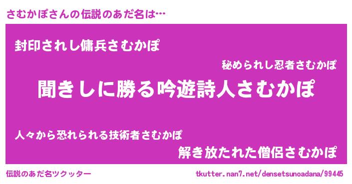| ヘコむあだ名 | 『さむかぽ(笑)』『さむにゅー』 |