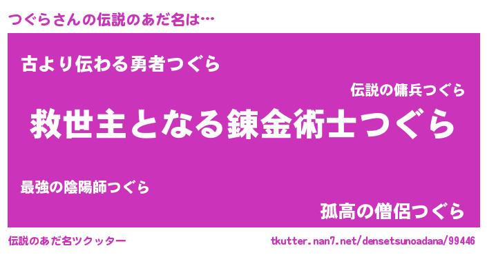 | ヒーロー風カッコイイあだ名 | 『天空の使者つぐら』『ネオツグラ』 |