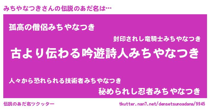 | ファンタジー風あだ名 | 『ミチディッシュ』『ユリミチヴァット』 |