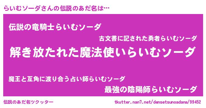 | 意味不明あだ名 | 『とにかく怪しいらいむソーダ』 |