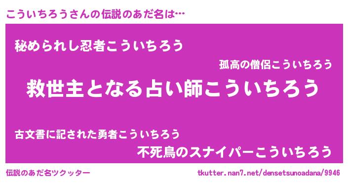 | 男性向けラノベタイトル風あだ名 | 『うちのこういちろうが世界を掌握している!』 |
