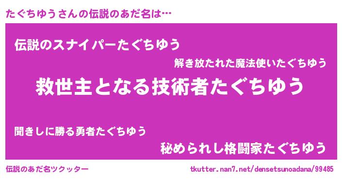 | ヒーロー風カッコイイあだ名 | 『天空の使者たぐちゆう』『銀牙騎士タグ』 |