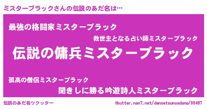 | 男性向けラノベタイトル風あだ名 | 『ミスターブラックスレイヤー』 |