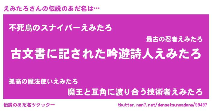 | 意味不明あだ名 | 『永久保存えみたろ』『自称えみたろ』 |