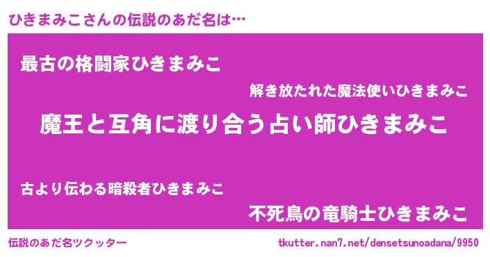 | 意味不明あだ名 | 『自称ひきまみこ』『ペロリンひきまみこ』 |