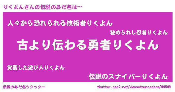| 意味不明あだ名 | 『永久保存りくよん』『自称りくよん』 |