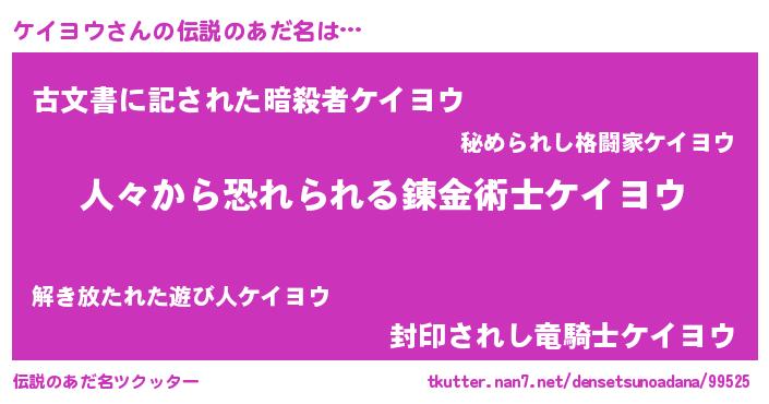 | 意味不明あだ名 | 『自称ケイヨウ』『永久保存ケイヨウ』 |
