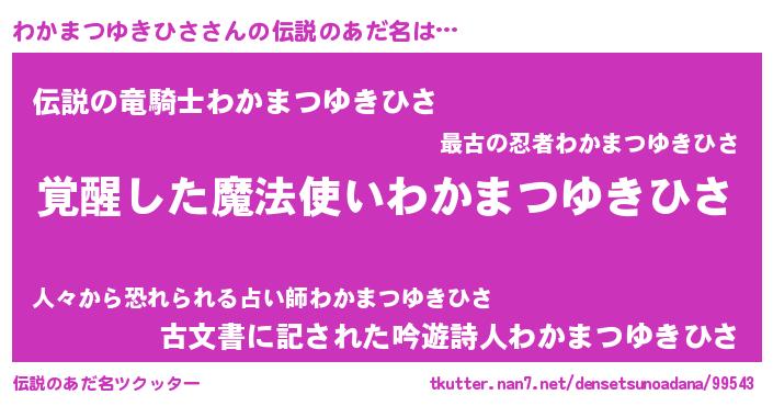 | 男性向けラノベタイトル風あだ名 | 『わかまつゆきひさの嫁は女の子じゃないと思った?』 |