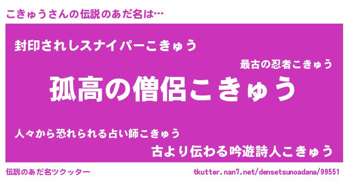 | ヒーロー風カッコイイあだ名 | 『黄金騎士コキ』『スーパーコキュウ』 |