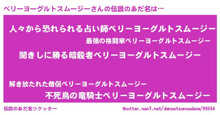 | 男性向けラノベタイトル風あだ名 | 『ベリーヨーグルトスムージーという概念が存在しない退屈な世界 』 |