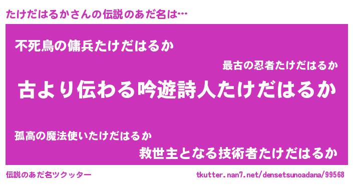 | ヘコむあだ名 | 『たけだはるか(小並感)』『たけにゅー』 |