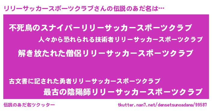 | 欧米人風あだ名 | 『トリンドルリリーサッカースポーツクラブ』 |