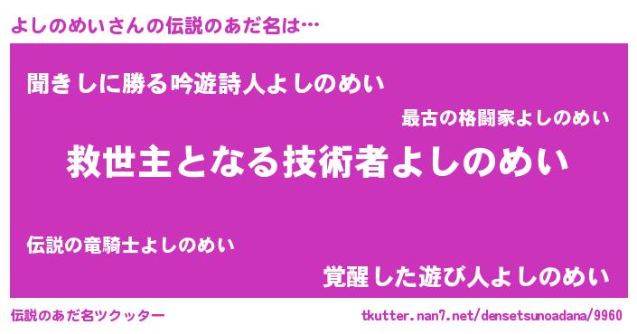 | ファンタジー風あだ名 | 『クインヨット』『ヨシディッシュ』 |