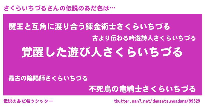 | 意味不明あだ名 | 『自称さくらいちづる』 |