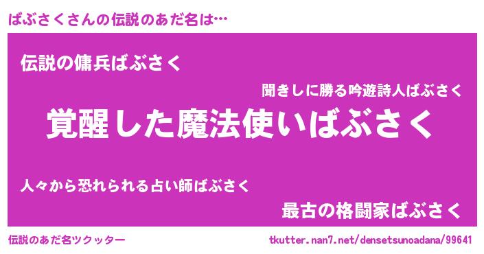 | 意味不明あだ名 | 『とにかく怪しいばぶさく』 |