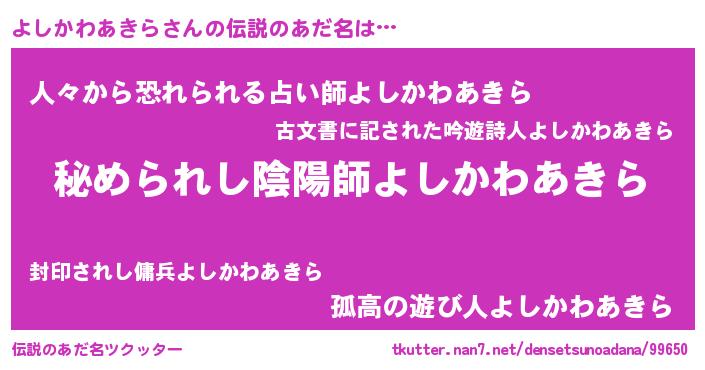 | 意味不明あだ名 | 『よしかわあきらフォーエバー』 |