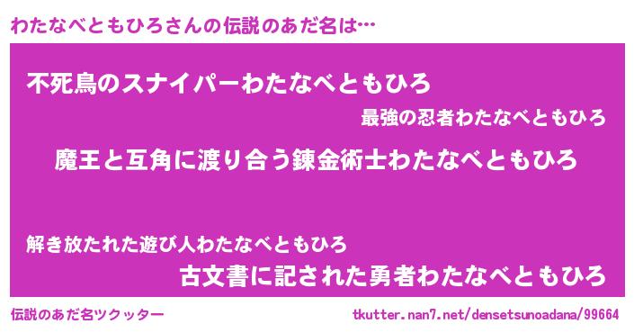 | 女子向けラノベタイトル風あだ名 | 『わたなべともひろ恋絵巻』 |