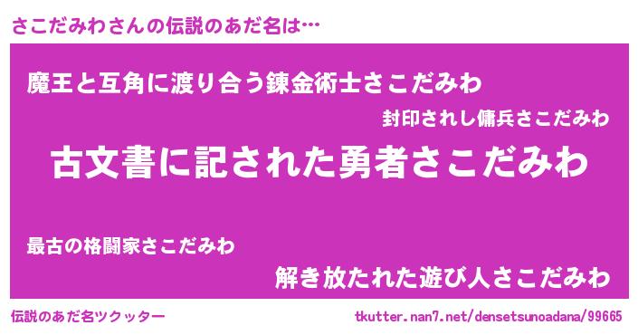 | 男性向けラノベタイトル風あだ名 | 『さこだみわに滅ぼされるだけの簡単なお仕事です』 |