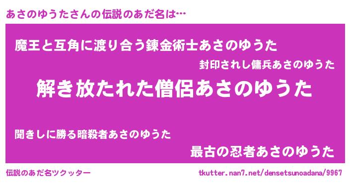 | 意味不明あだ名 | 『住所不定無職あさのゆうた(62歳)』 |