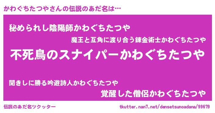 | 肩書あだ名 | 『かわぐちたつや御曹司』 |